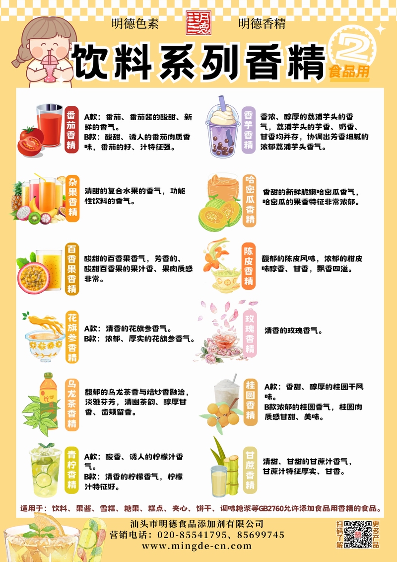 如需獲取不同版本風味樣品或配方方案,歡迎聯(lián)系明德團隊。我們致力于為食品工廠提供真實、安全、高性價比的香精解決方案。
